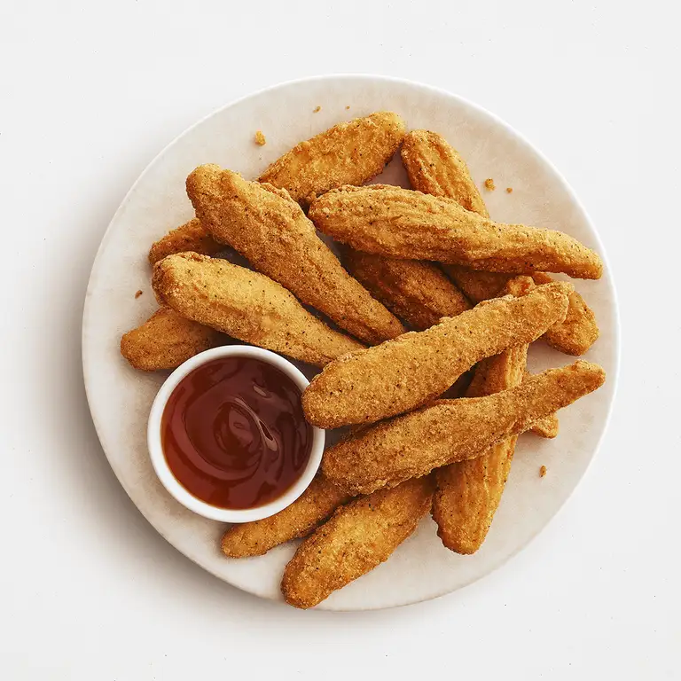Préchauffer à 200 °C (390 °F). Déposer les lanières de poulet congelées dans le panier et cuire pendant 12 minutes. Retourner à la mi-cuisson.