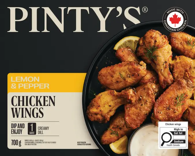 Chicken wings, Water, Rice starch, Salt, Spices, Sodium phosphate, Sugar, Citric acid, Citrus fiber, Flavour, Xanthan gum, Maltodextrin, Dehydrated lemon peel, Onion powder, Lemon juice solids, Yeast extract, Garlic powder.