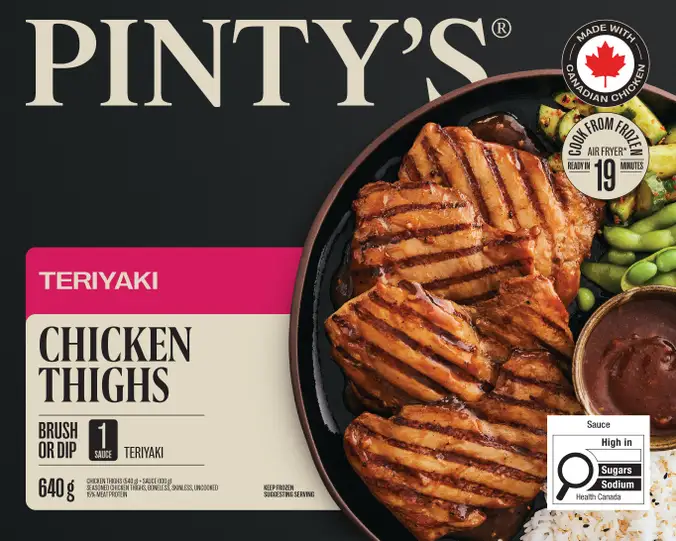 Chicken thighs, Water, Sugars (fructose, sugar), Potato starch, Soy and/or canola oil, Tamari soy sauce powder [tamari soy sauce (soybeans, salt), maltodextrin, salt], Yeast extract, Citrus extract, Natural flavour, Dehydrated garlic, Sea salts, Caramel colour, Spices. Contains: Soy.